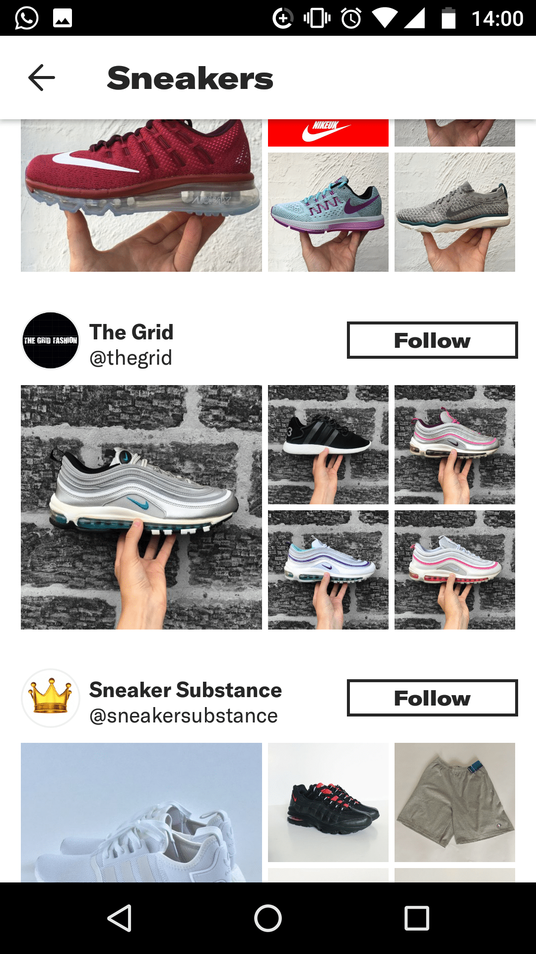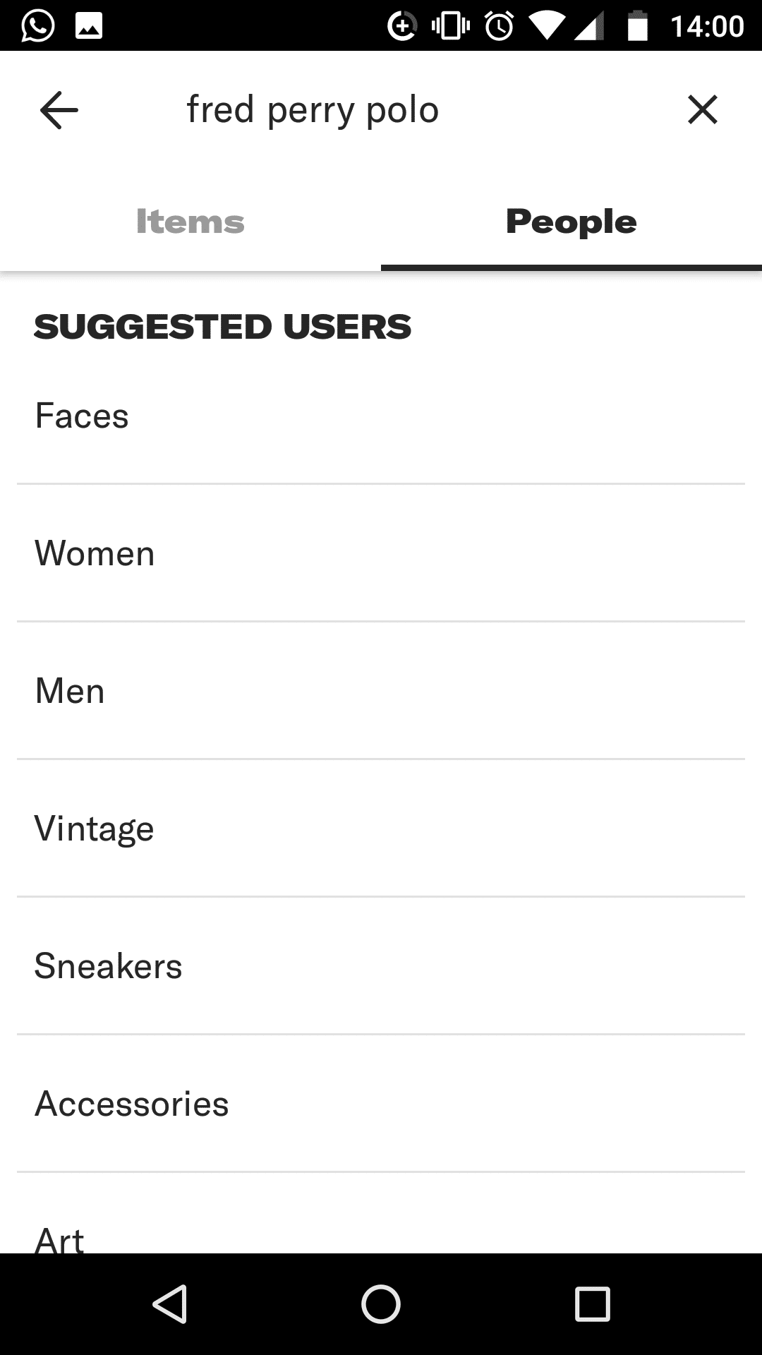 Once that is set up the first thing you‘re encouraged to do is find users to follow, much like Instagram or Twitter. You can do this either through a suggested list of sellers put into categories, or by searching for items and discovering sellers yourself.