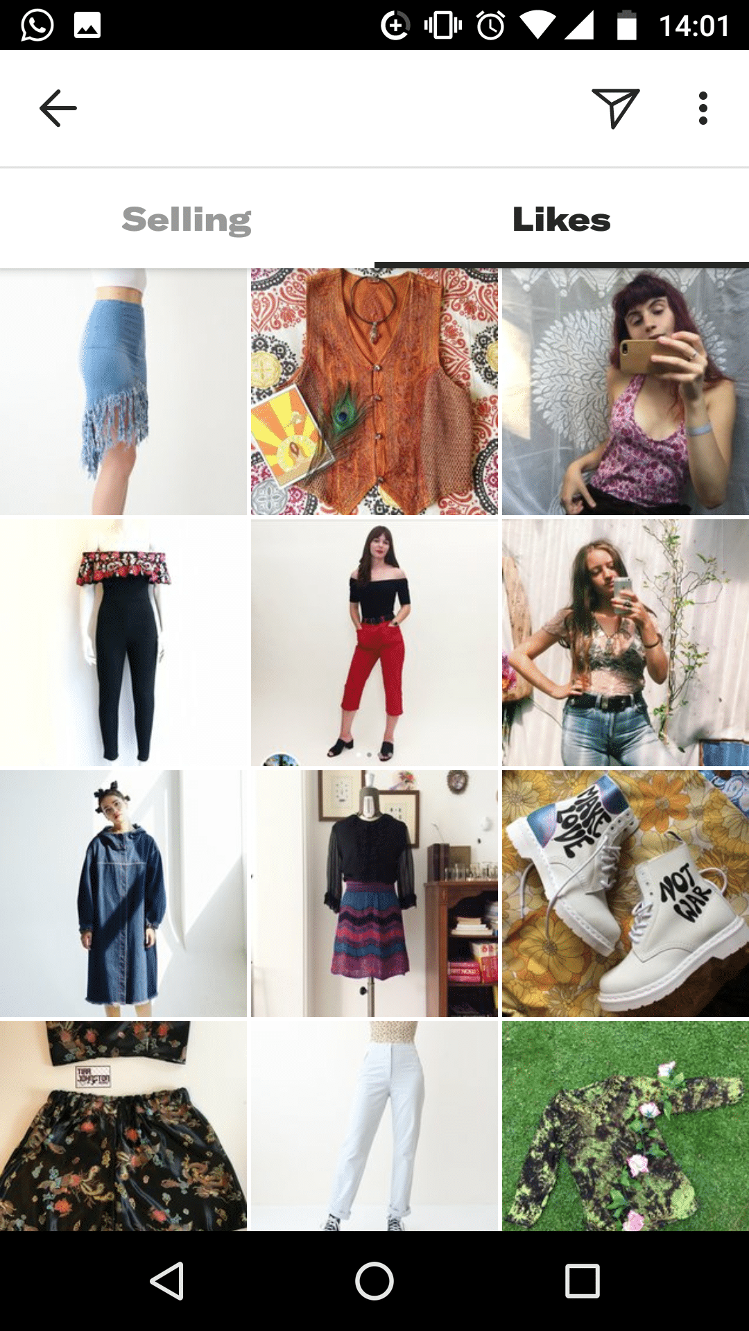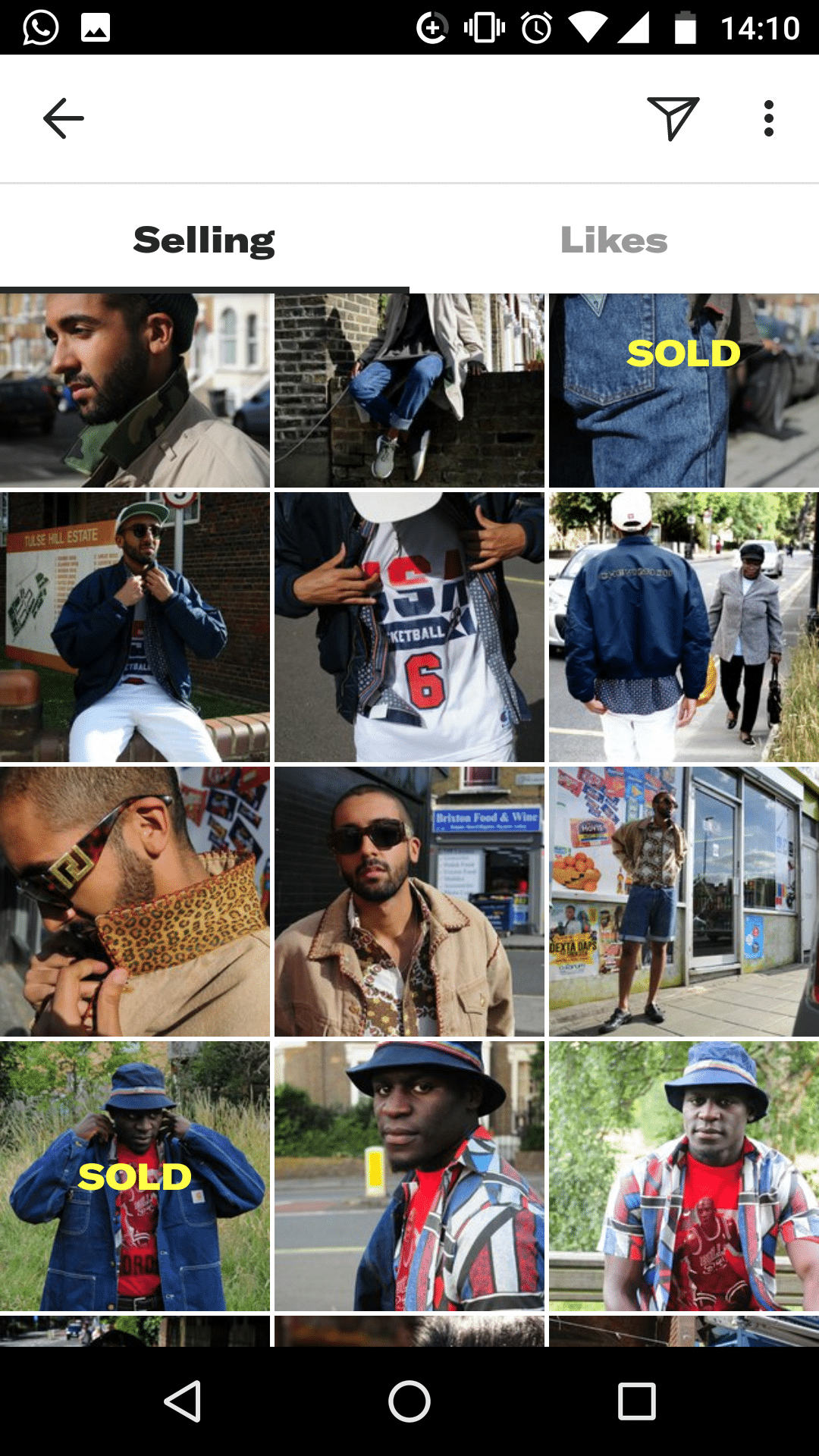 When you follow a seller, their profile and items for sale are added to your home screen. For each profile, you can view items that have been previously sold, which appear as usual adverts with a yellow sold sign across them. You can also see what items the sellers have liked, leading you to sellers of a similar style or product.