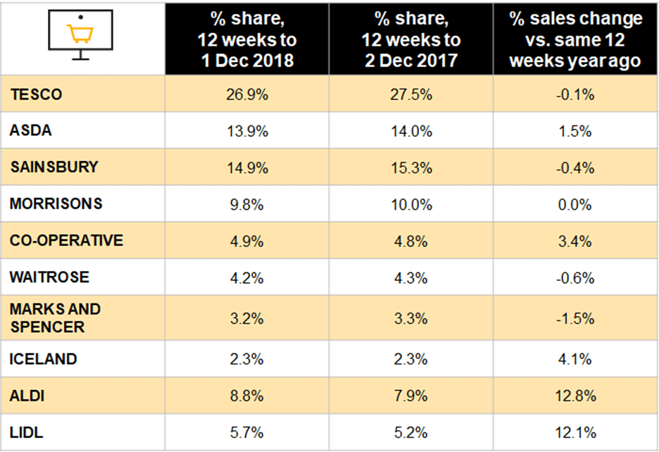 Separate figures from Nielsen also indicated that sales momentum remained weak across the grocery industry, with headline growth of 2.3 per cent for the four-week period ending December 1.