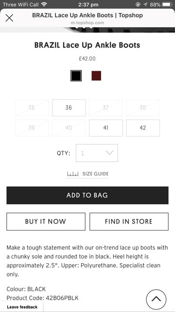 If you then scroll down, you’ll be able to purchase the product by adding it to your bag.