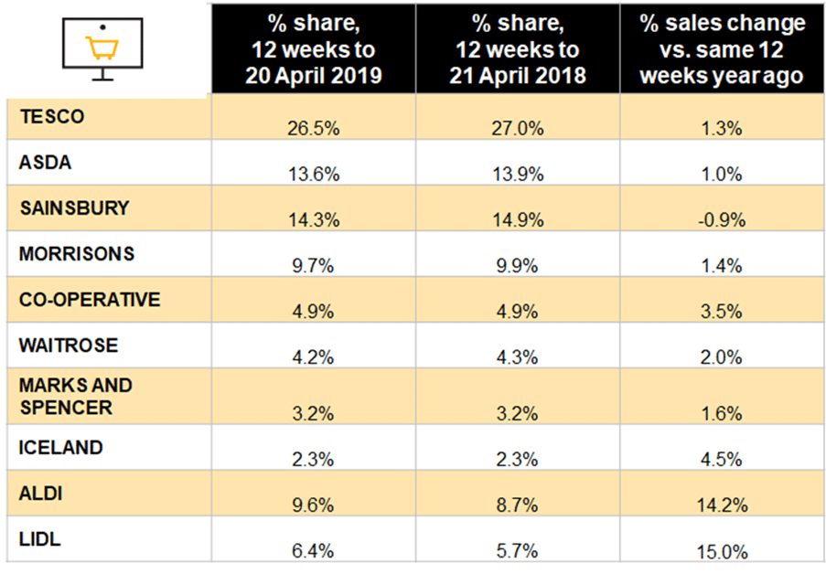 “Meanwhile, Sainsbury’s and Asda are continuing to battle it out for second place.