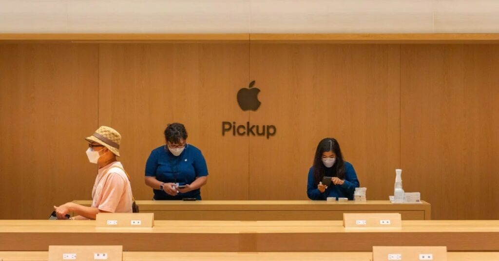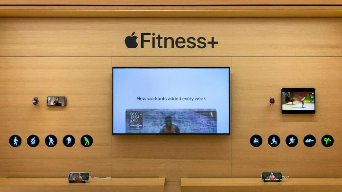 In the Fitness+ area of the store, shoppers can see how to make the most out of Apple’s health and fitness offering though interactive touch panels.