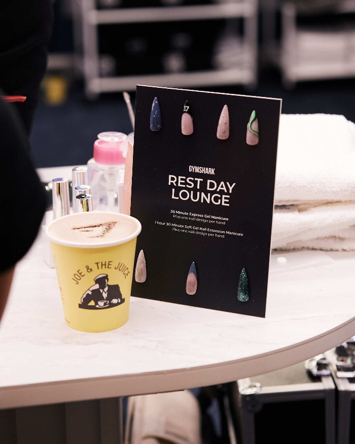 // Gymshark has opened a rest day lounge offering free beauty treatments within its London store