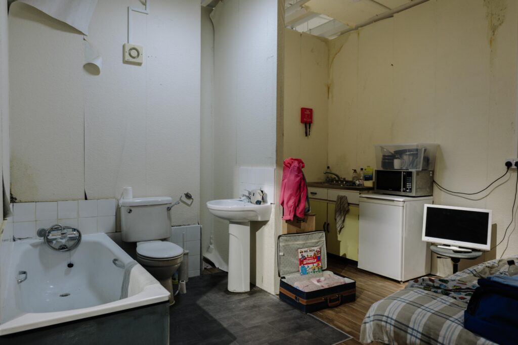 The roomsets, which can be found in four Ikea stores across the UK, contrast the Swedish furniture giant‘s famously well-designed showrooms – showing the cramped, dangerous, and grotty spaces many are forced to reside in, based on real stories of people local to the stores involved.