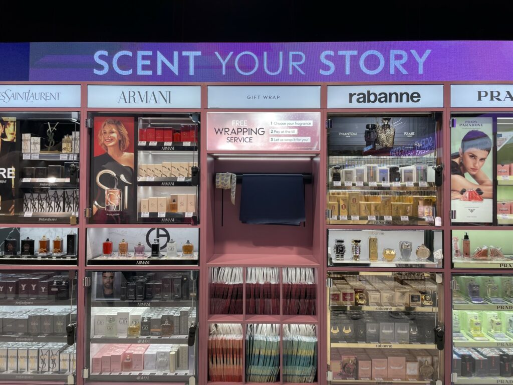 The store features a new-concept Fragrance Discovery Bar with a refill station, interactive product display, and a digital fragrance finder to help customers find their perfect scent.