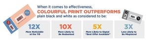 And when it comes to effectiveness, colourful print outperforms plain black and white as considered to be: